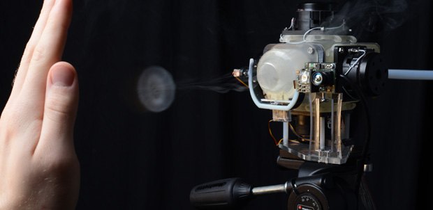 Utilizando una tecnología de seguimiento, ya sea un Kinect o una cámara convencional, AIREAL te enviará aros de aire al momento de interactuar con el juego.