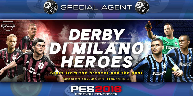 Gracias a que este fin de semana es el derby milanés, Konami realizará una promoción especial temática en myClub de PES 2016 que tendrá lugar desde el 28 de enero hasta el 4 de febrero.