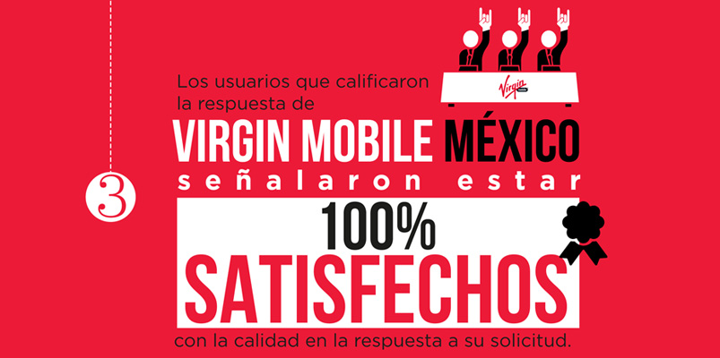 -Los usuarios que calificaron la respuesta de Virgin Mobile México señalaron estar 100% satisfechos con la calidad en la respuesta a su solicitud.