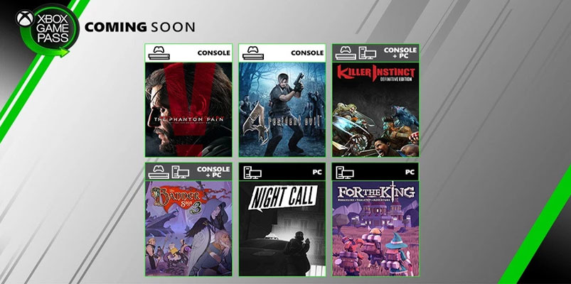 Xbox prepara el lanzamiento de seis nuevas adiciones a su servicio Xbox Game Pass, entre ellos destaca Metal Gear Solid V: The Phantom Pain y Resident Evil 4 para consolas. También hay juegos para PC.