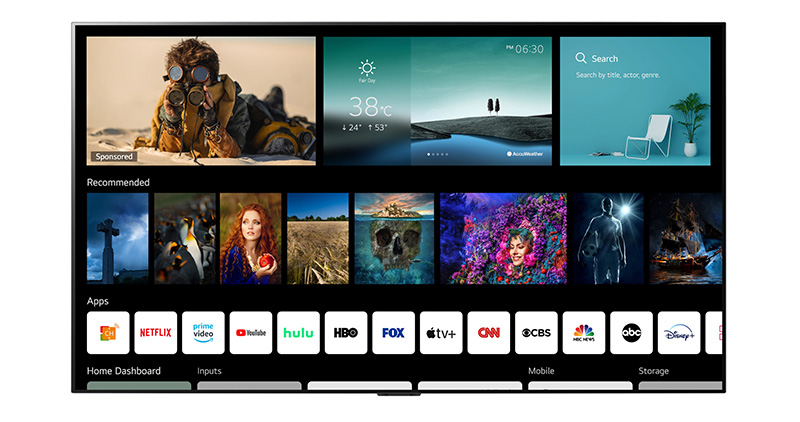 La pantalla completa muestra de un vistazo el contenido preferido e información relacionada a los hábitos de consumo, la nueva pantalla de inicio actúa como un centro para la configuración y el ecosistema webOS en general.