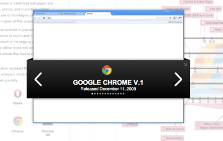 Por lo que el equipo se ha dado la tarea de presentar lo que se ha hecho en este tiempo con el navegador web de código abierto y basado en el software libre Chromium. El equipo de Chrome desarrolló una infografía interactiva sobre la evolución de los principales navegadores y tecnologías web.