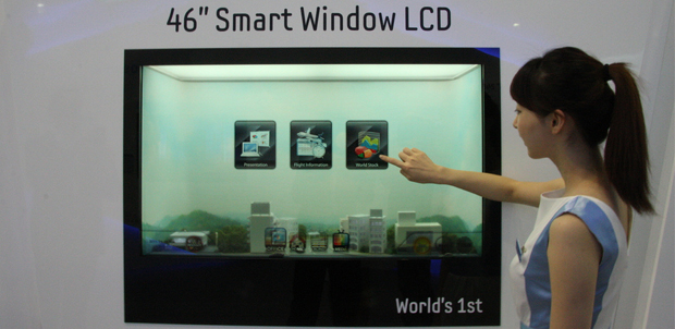 Este tipo de paneles es el futuro de la tecnología visual. La pantalla transparente de Samsung dispone de un contraste de 4500:1 con una resolución HD (1366×768) y 70 por cierto más de ganancia en color.
