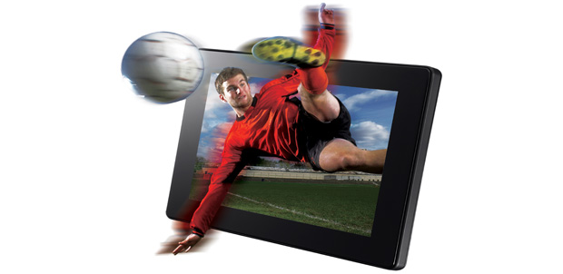 La pantalla de 7.2 pulgadas permite ver imágenes en 2D con resolución de hasta 10 Mpixeles, en ella se muestran 16,77 millones de colores, tiene un ángulo de visión de hasta 160º en horizontal y 140º en vertical.