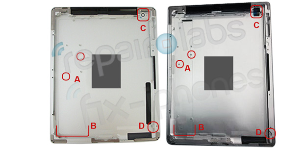 De acuerdo con repair labs, el nuevo iPad tendrá la misma forma que la actual versión, aunque sí se tienen grandes cambios. La imagen de arriba muestra los dos modelos y sus diferencias.