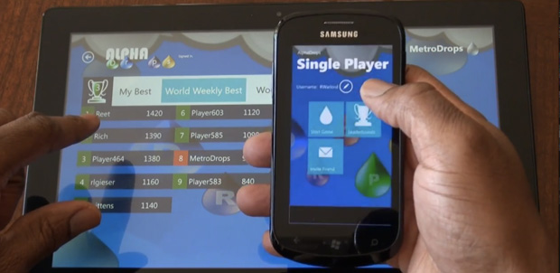 Gracias a un video de Rick Walrond vemos un avance de lo que podrás hacer si tienes un smartphone con Windows Phone y una tableta con Windows 8. El juego AlphaDrops para Windows 8 es muy similar a la versión móvil.