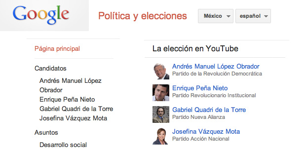 Google crea el Sitio de Política y Elecciones México 2012, aquí se integra toda la información más relevante sobre los cuatro candidatos a la Presidencia de México.