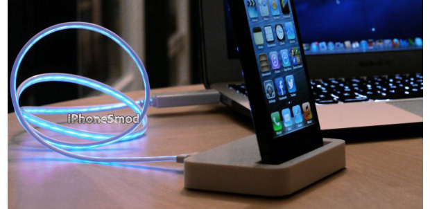 El sitio utiliza los mismo principios que Apple pero con la mejora de emitir una luz que se mueve por todo el cable y nos da la sensación de la transferencia de datos. Este conector o Flash Lightning Dock tiene un precio de 39.99 dólares y se consigue en iPhone5Mod.