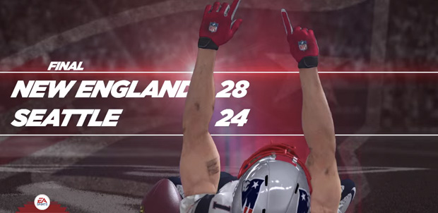 Tom Brady gana su cuarto anillo de Super Bowl y es nombrado el MVP del partido. Como cada año, Electronic Arts realizó la simulación oficial del Super Bowl que se llevará a cabo entre Nueva Inglaterra y Seattle.