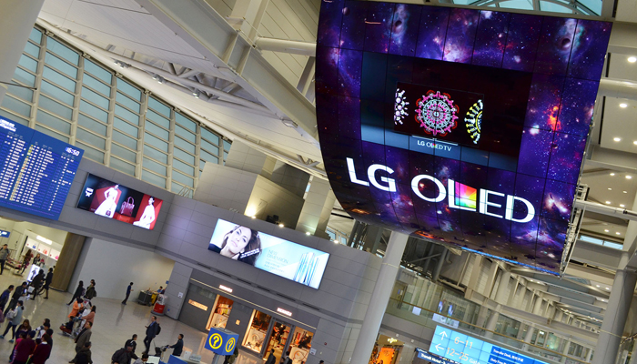LG se une con la firma de diseño francés Wilmotte & Associés para desarrollar las enormes estructuras que adornan la terminal principal del aeropuerto. Dos de las mayores pantallas OLED del mundo están en Corea del Sur.