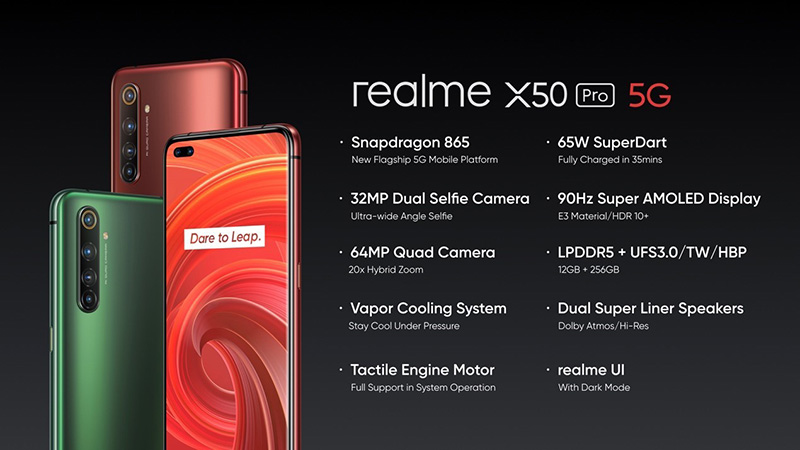 Con tres variantes: 8GB + 128GB; 8GB + 256GB y 12GB + 256GB, realme X50 Pro 5G es un verdadero teléfono inteligente 5G insignia de alto rendimiento.