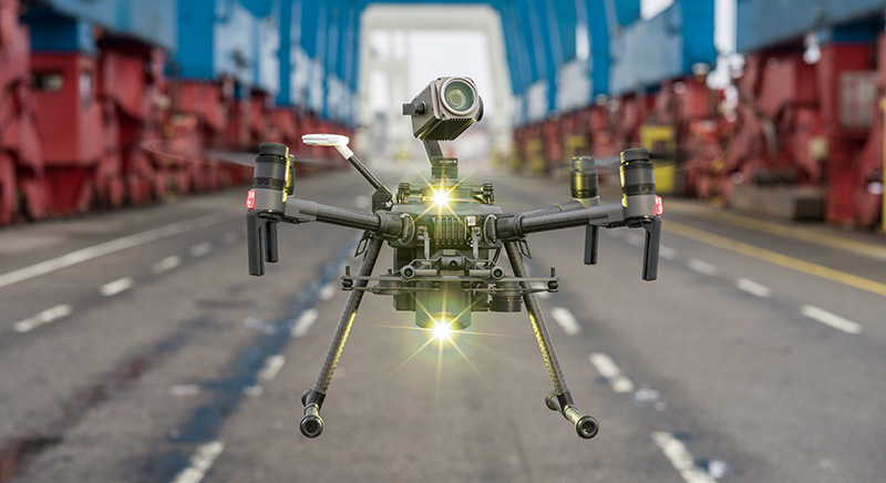 Los modelos como Mavic 2 Enterprise Zoom y Dual de DJI, Phantom 4 Pro o Matrice 210 v2, se pueden utilizar en áreas vulnerables a la delincuencia para observar y denunciar actividades sospechosas y criminales, reducir la necesidad de personal, minimizar el contacto público y maximizar la eficiencia. Estos drones fáciles de desplegar pueden ser operados por un solo oficial para patrullar un área sensible, al igual que lo haría un vehículo policial normal.