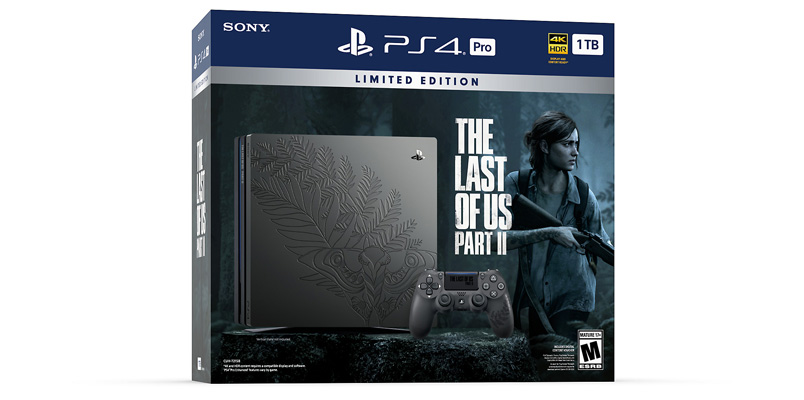 La consola PS4 Pro edición limitada de The Last of Us Part II incluye un acabado mate Steel Back y el icónico tatuaje de helecho de Ellie grabado en la parte superior de la consola. Así como el nombre del juego al frente.