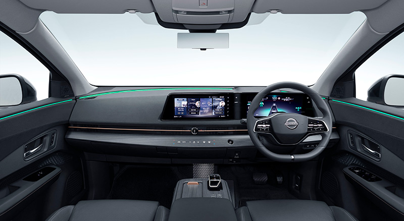 Nissan Ariya es el vehículo Nissan más avanzado tecnológicamente hasta la fecha. El interior tipo lounge, con asientos Zero Gravity, ofrece un ambiente acogedor y confortable para el conductor y los pasajeros