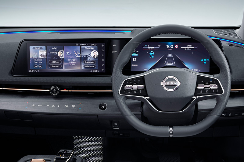 Gracia a una nueva interfaz hombre-maquina se puede ajustar la configuración del vehículo usando comandos de voz. Nissan Ariya también incluye Amazon Alexa para simplificar y organizar nuestras vidas. Contará con actualizaciones de firmware por aire.