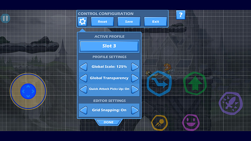 Brawlhalla permite a los jugadores de dispositivos móviles personalizar completamente los controles de la pantalla táctil, así como usar otros controles; permitiéndoles lograr combos precisos en combates en tiempo real.