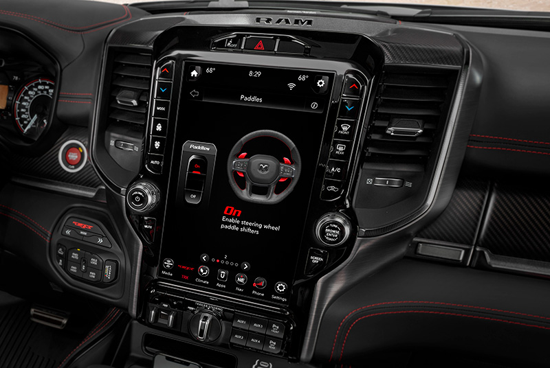 Como ayuda, la Ram 1500 TRX también incorpora una pantalla TFT de 7 pulgadas, exclusiva del TRX, con colores y gráficos únicos, así como relojes reconfigurables.