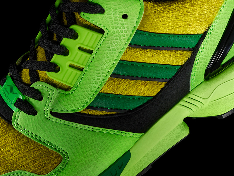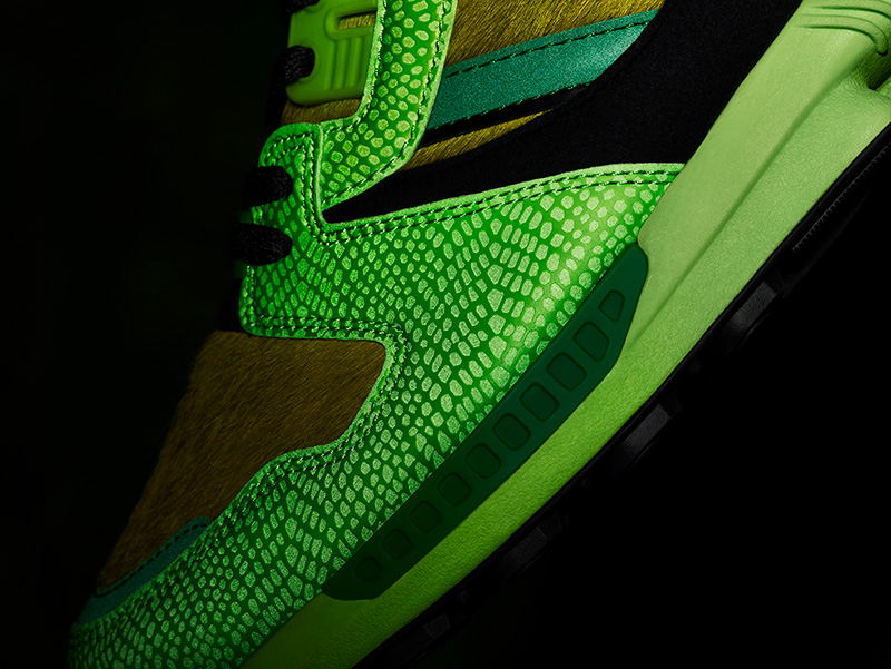 Como homenaje a la colaboración “G-SNK” de la tienda con ZX en el año 2011, ZX-8000 atmos luce un llamativo color fluorescente.