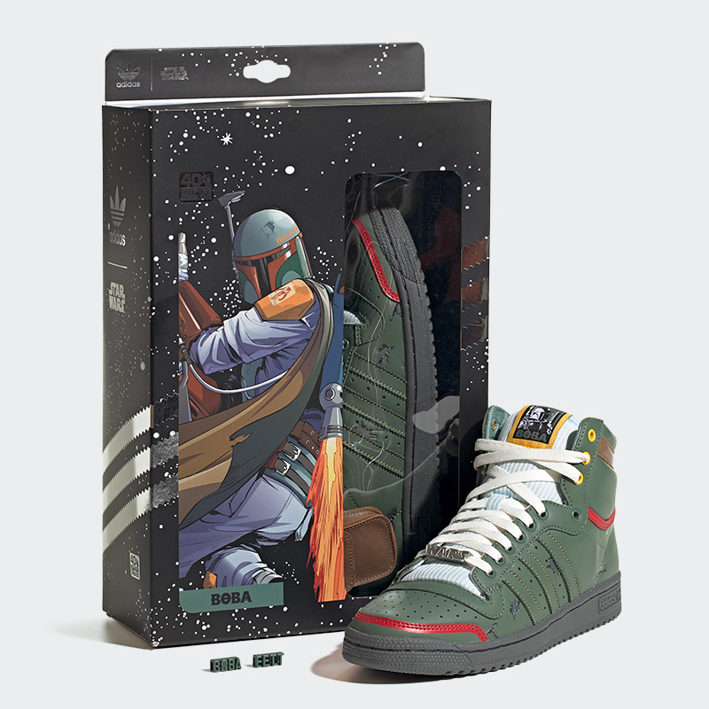 Celebrando el 40 aniversario de Star Wars: El Imperio Contraataca, adidas Originals lanza una colección limitada de sneakers inspirados en los principales personajes, como lo es Boba Fest.