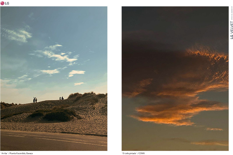 Todas las fotos incluidas en el álbum fueron inspiradas en los colores de los nuevos LG Velvet Sunrise y Dark Sky, dos colores que reflejan las tonalidades perceptibles durante el alba y que además, mantuvieron su pureza sin edición adicional.