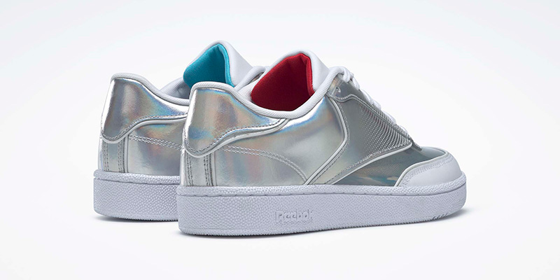 Estos Club C de cuero blanco tienen un tono holográfico y una plantilla de nubes que nos recuerda a Wonder Woman sobrevolando el cielo y la ventana transparente de la punta, hace referencia al jet invisible en el que Wonder Woman pasa desapercibida en cualquier lugar peligroso.