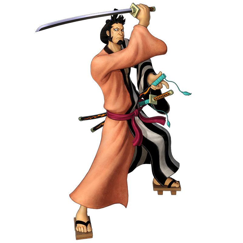 Proveniente de una Tierra de Wano 20 años en el pasado, el líder de los Akazaya Nine, retenedores de Kozuki Oden posee la formidable habilidad única de generar y cortar incluso las llamas más poderosas con su katana gemela.