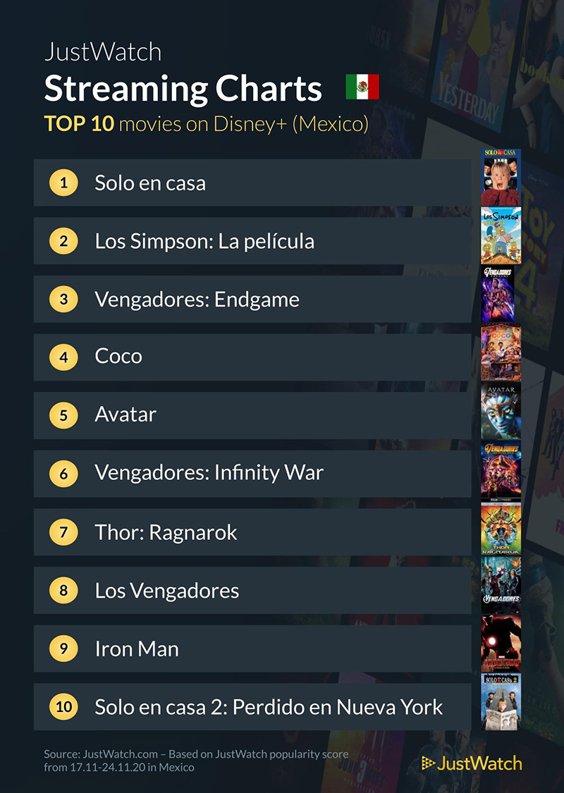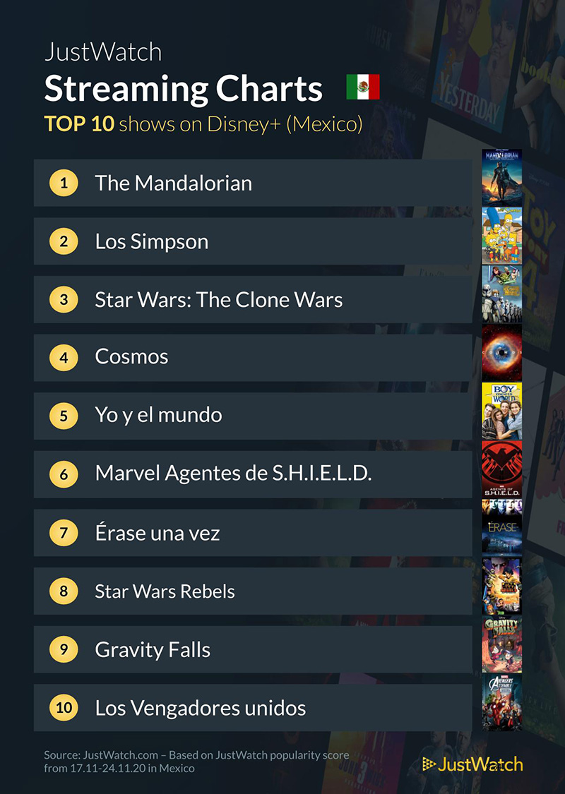 Gracias a JustWatch es posible conocer cuáles fueron los contenido más vistos durante la primera semana de lanzamiento de Disney+ en México. ¿Cuál de estas series o películas ya lograste ver?