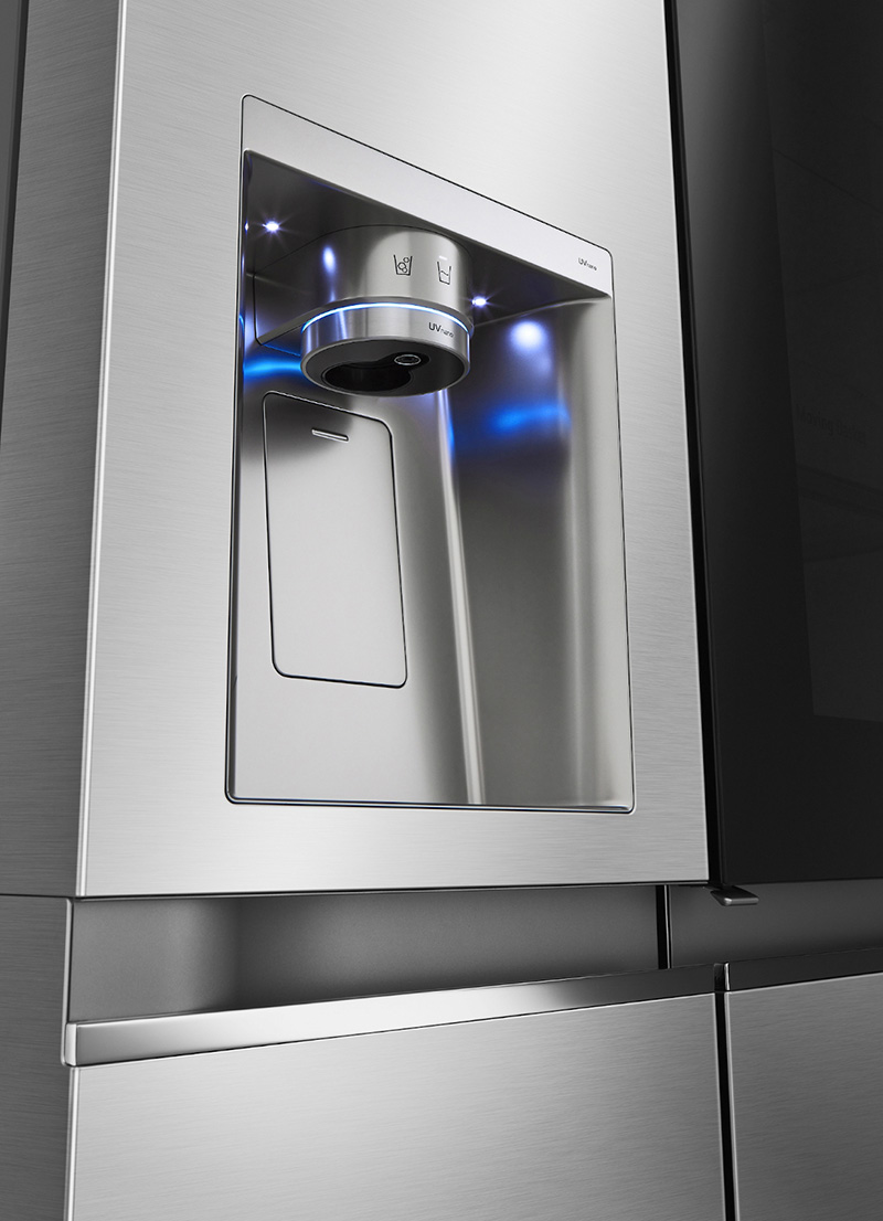 Los nuevos refrigeradores InstaView de LG ahora incorporan la tecnología UVnano que aprovecha el poder de la luz ultravioleta para mantener sin esfuerzo y de manera efectiva un dispensador de agua higiénico y libre de gérmenes.