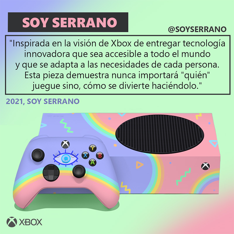 “Me encanta poder enseñar mi punto de vista hacía la consola y el mundo del gaming mediante mi trabajo. Fue fácil ya que siempre he tenido una imagen muy clara en mi mente de cómo se verían los colores pasteles plasmados en un Xbox, así que traté de reflejar eso”.
