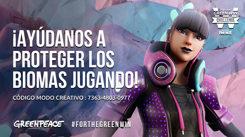 For The Green Win involucra aprender y conversar sobre algunas problemáticas ambientales latinoamericanas reales, las que han sido recreadas en mapas del Modo Creativo de Fortnite, a través de biomas como las montañas, marino, desierto florido, bosque y selva. ¡