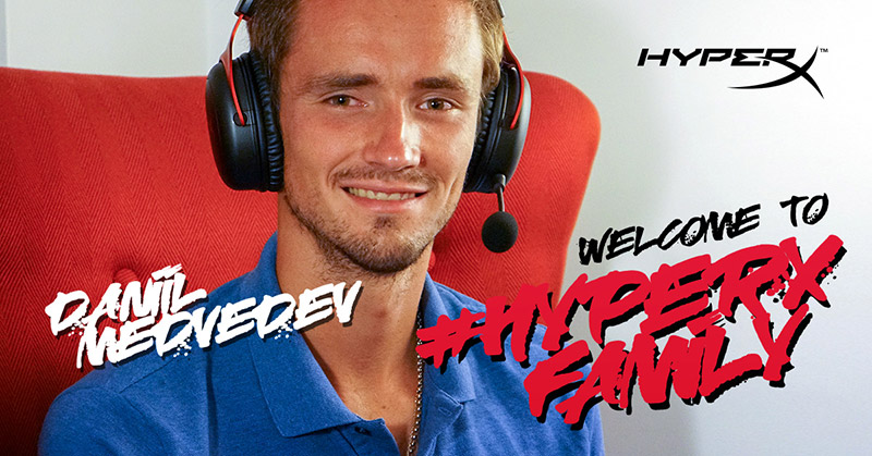HyperX anuncia al tenista ruso Daniil Medvedev como nuevo embajador de marca global. El segundo mejor tenista del mundo de la ATP usará los accesorios HyperX para jugar.