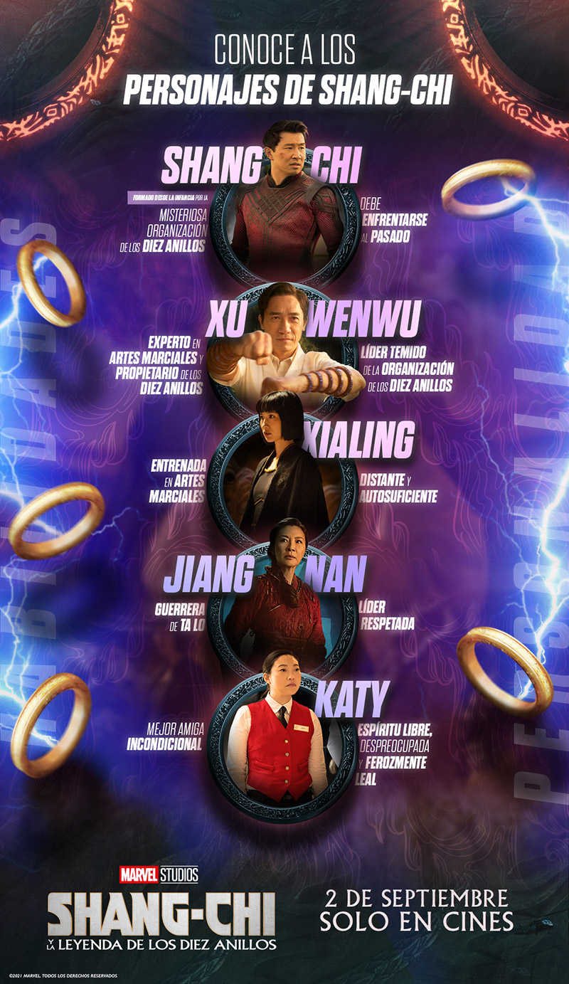 Ahora te presentamos a los personajes principales de Shang-Chi y La Leyenda de los Diez Anillos que pronto podrás disfrutar en las salas de cine y que inicia la nueva era de Marvel Studios.