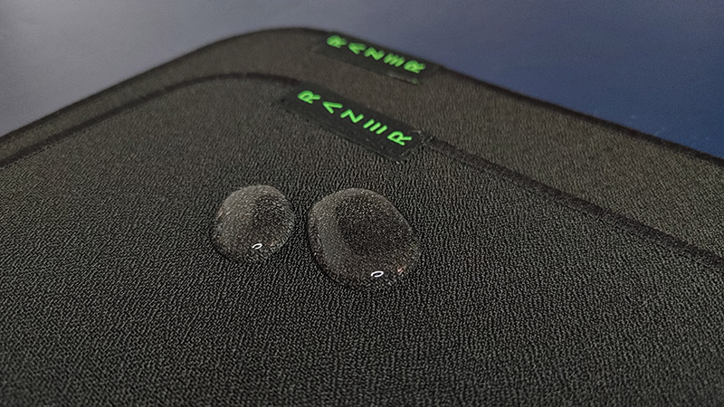 Otro punto importante de Razer Strider es la resistencia al agua, por lo que los líquidos, como agua o refresco, no le afectarán; así que cuando se te caiga el vaso podrás limpiarlo con un trapo o servilleta  y el material no se verá afectado.