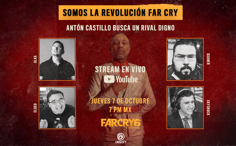 Con ellos, podrás disfrutar de las primeras horas de Far Cry 6. Además de que los streamers participantes competirán entre sí para completar una serie de divertidos retos que serán anunciados en nuestras redes sociales con el objetivo de ganar una bolsa de regalos inspirados en Far Cry 6 para sus fans.