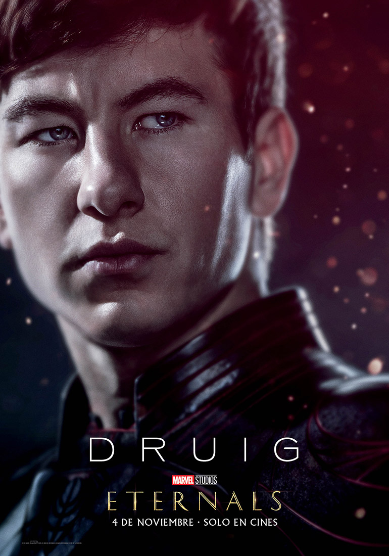 Druig es el más enigmático de los Eternos. Su naturaleza distante hace dudar constantemente sobre su posición como amigo o enemigo. A lo largo de su existencia, se ha apartado de los demás Eternos porque está en desacuerdo sobre la forma en que han interactuado con la humanidad a lo largo de los siglos. Puede usar energía cósmica para controlar la mente de los humanos. El actor irlandés Barry Keoghan interpreta a Druig.