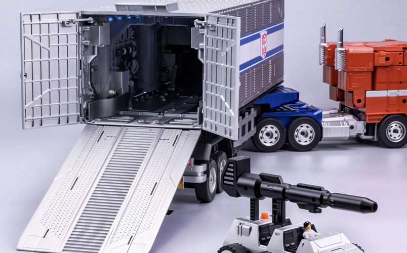 La caja de remolque de conversión automática para Optimus Prime puede abrirse, transformarse y soportar un vehículo en miniatura que puede rodar por su rampa. El tráiler tiene el diseño del original G1 de la franquicia de Transformers y se adjunta al modelo Optimus Prime que se convierte solo.