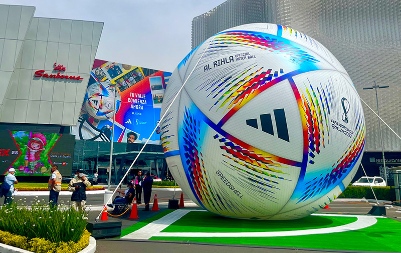 Al Rihla, el balón oficial de la Copa Mundial de la FIFA Qatar 2022, se presenta exclusivamente en México con réplicas de 8 metros de altura en dos reconocidos lugares de la ciudad las Torres de Satélite y Perisur.