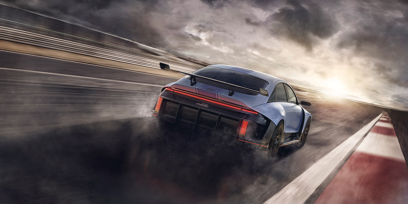 El RN22e combina el nuevo IONIQ 6 y la plataforma modular eléctrica global (E-GMP) de la compañía, al mismo tiempo que establece un nuevo estándar en vehículos eléctricos de alto rendimiento.