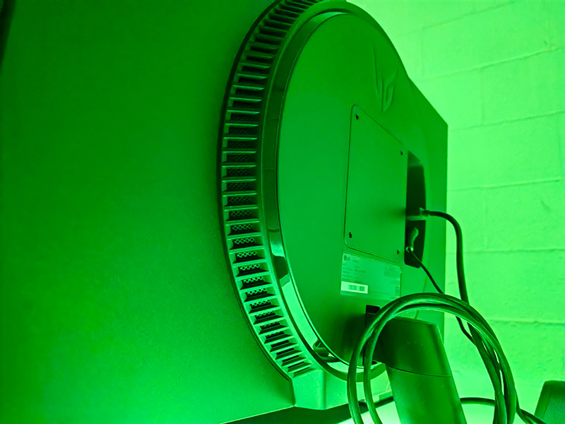 Además de los puertos, la parte trasera tiene un montaje VESA 100 para que puedas colgarlo en un soporte o pared y así, darte más espacio en tu área de juego o trabajo.