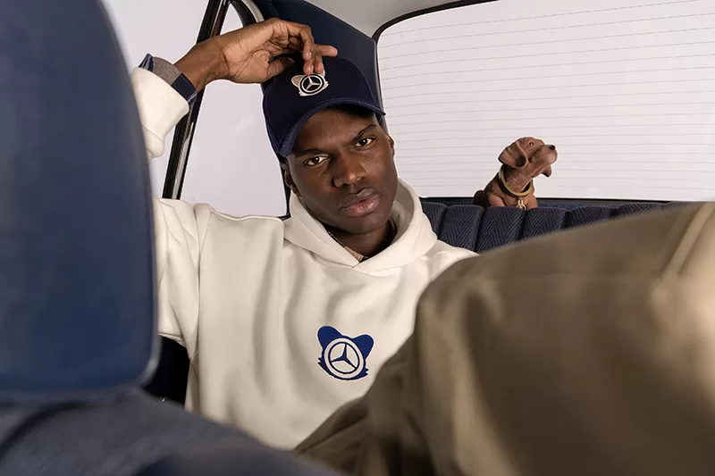Fabricada en algodón 100 % orgánico, la sudadera con capucha Mercedes-Benz x Superplastic incluye el icónico logotipo de Superdackel.