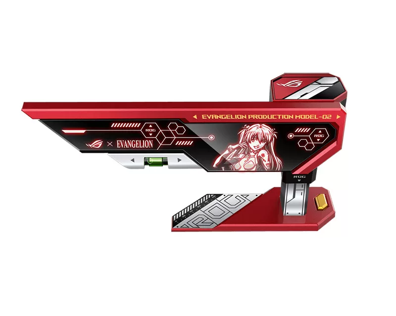 La edición ROG Herculx EVA-02 está envuelta con una variedad de gráficos temáticos de ROG y Evangelion mientras soporta la carga de mantener el nivel de una tarjeta gráfica. Su soporte tiene el estilo del cuchillo progresivo EVA-02 para comunicar fuerza y adaptabilidad.