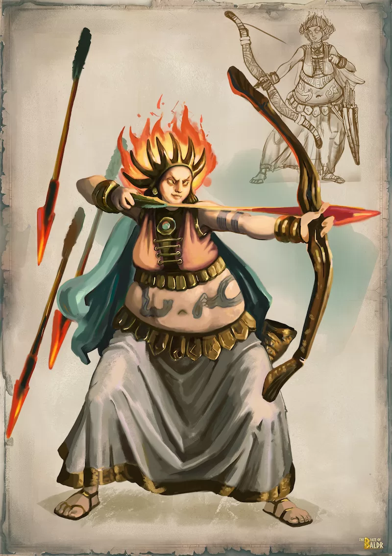 Freya, la voluptuosa diosa del amor y la guerra. Su collar mágico, Brisingamen, es forjado por cuatro enanos y se lo regaló después de pasar una noche con cada uno de ellos. En el juego, Freya aparece como una majestuosa arquera en las mágicas junglas de Alvheim.