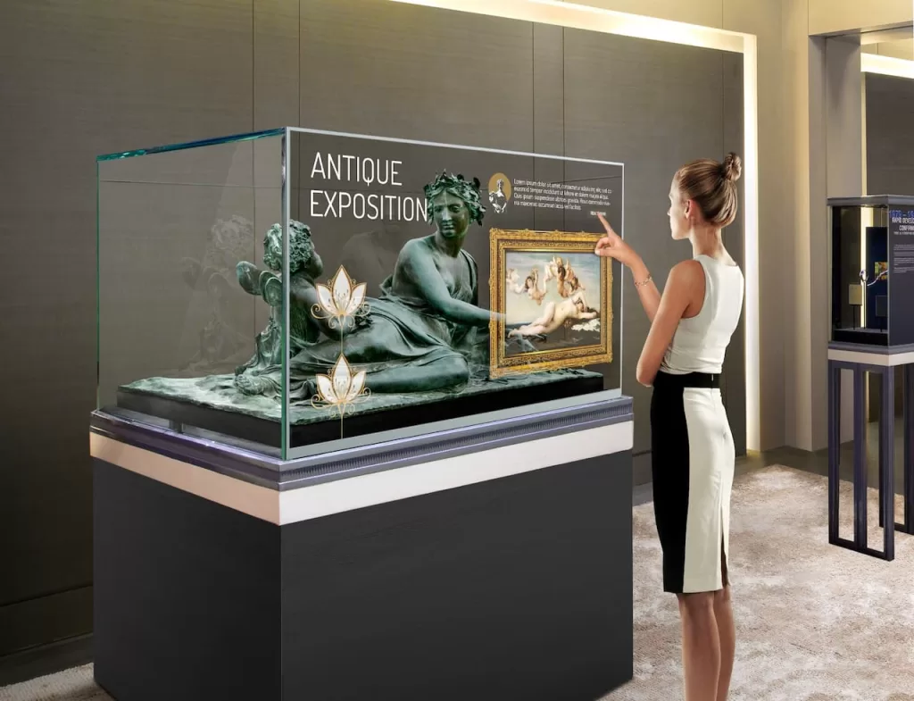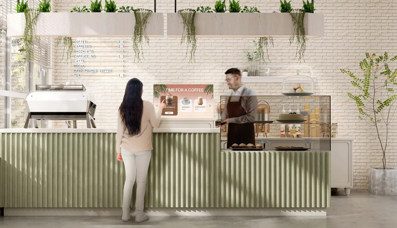 - OLED transparente de 55” y el nuevo prototipo de 30” con inteligencia artificial integrada, desarrollado en alianza con Invisible Arts. Este concepto permite atención automatizada con un humano digital sintético, ideal para retail y hospitalidad.